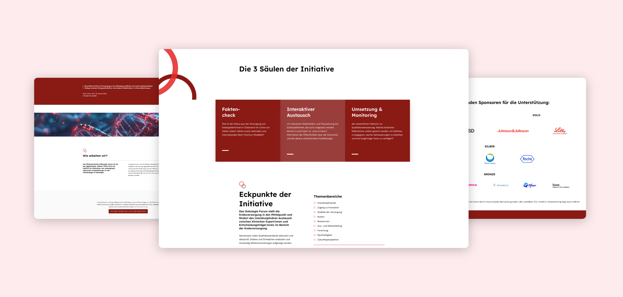 Ziel war es, eine Website zu entwickeln, die den interdisziplinären Austausch zwischen klinischen Expert:innen, Entscheidungsträger:innen und Stakeholdern im Gesundheitswesen fördert. Besonderer Fokus lag auf der strukturierten Präsentation von Workshops, Publikationen und Veranstaltungshinweisen, um die Qualität der Krebsversorgung transparent darzustellen und kontinuierlich zu verbessern.